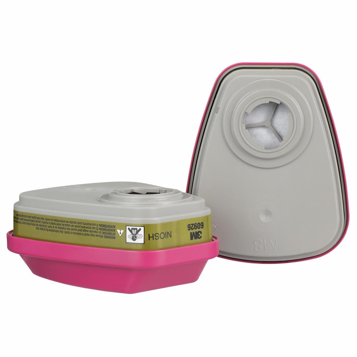 3M™ 051138-46465 Combination Cartridge With Particulate Filter, For Use With 3M™ 6000, 7000, FF-400 Series Half and Full Facepiece Respirators with Bayonet Filter Holder, P100 Filter Class, 0.9997 Filter Efficiency, Bayonet Connection, Magenta/Black