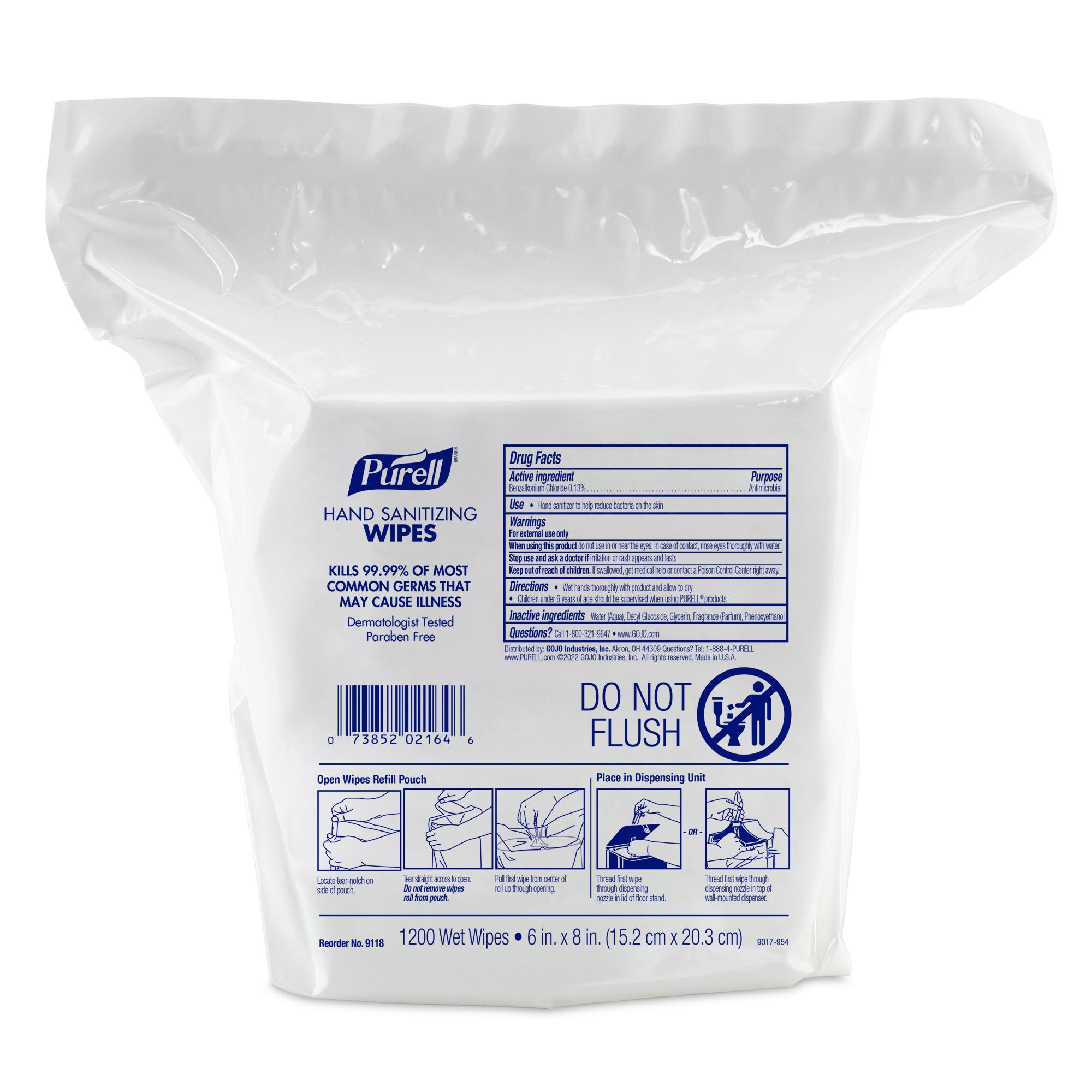 PURELL® 9217-02 Hand Sanitizing Wipe, 5 x 7 in, 1700 Count Capacity, Clear/Cloudy/Colorless/Ligh... - Brand: Purell®