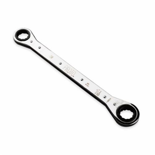 Proto® Box End Wrench, Measurement System: Imperial, Double End, Ratcheting, Spline, 13/16 x 15/16 in Wrench Opening, 12 Points, 9-1/4 in Overall Length, 1-5/16 x 1-37/64 in Box End Width, 1/2 in Box End Thickness, ASME B107.100-2010, Federal GGG-W-001405, Steel, Full Polished