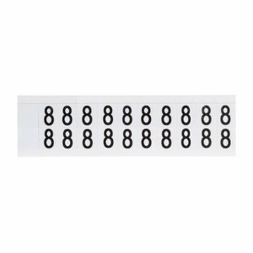 Brady® Number Label, High Quality Non-Reflective Standard, Series: 9712, Character: 8, 5/8 in Character Height, 0.466 in Character Width, Black Character, White Background, B-946 Vinyl, 1 Card, 3/4 in Overall Height, 0.656 in Overall Width, 20 Labels per Card