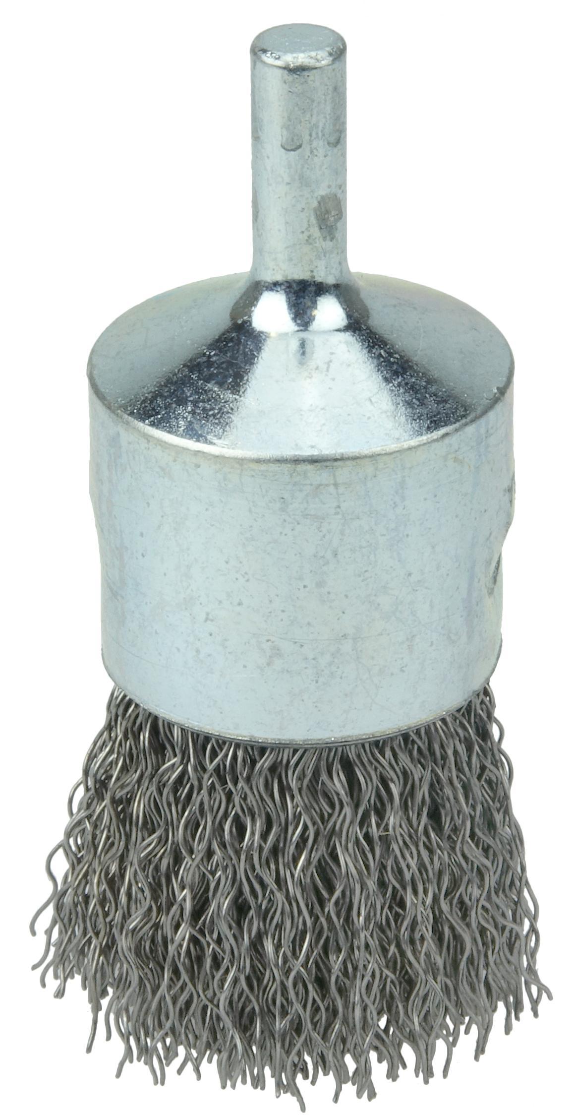 Weiler® 10012 End Brush, 1 in Dia Brush, Crimped, 0.02 in Dia Filament/Wire, Steel Fill, 1-1/8 in L Trim