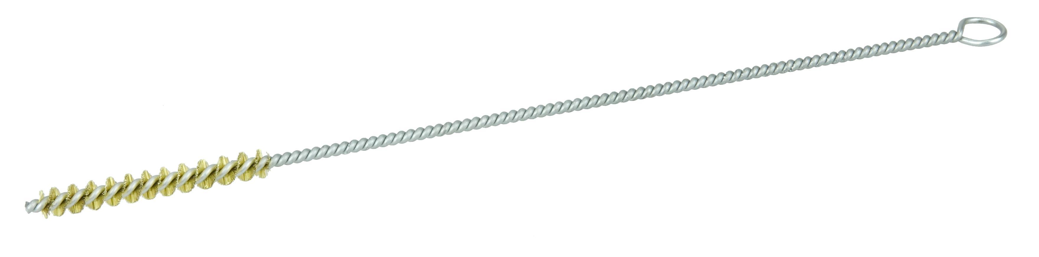 Weiler® Maintenance Tube Brush, Industrial Grade Performance Line, 3/16 in Brush Dia, 1-1/2 in Brush Length, 7 in Overall Length, Brass Fill, 0.003 in Filament/Wire Diameter, 3/32 in Stem Dia, Single Spiral, Single Stem and Loop