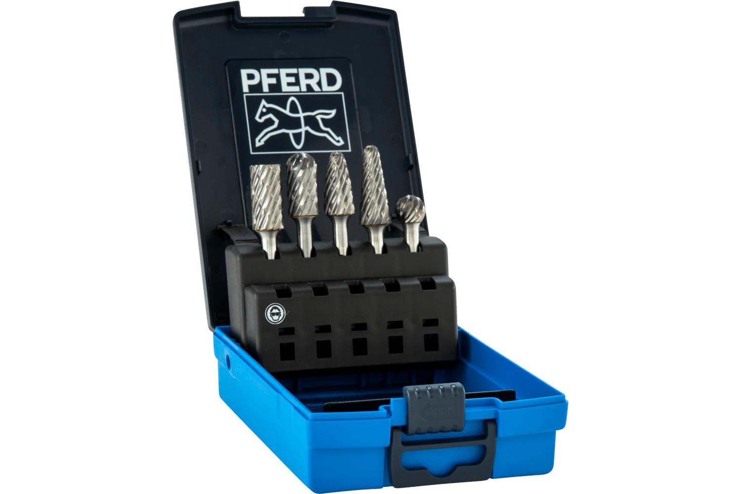 PFERD, 26555, Burr Set, 5 Piece, Tungsten Carbide Head, 1/4 in Shank Diameter