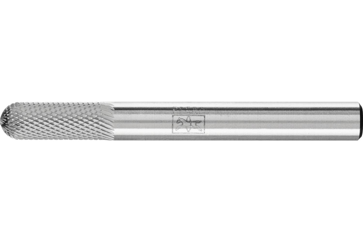 PFERD Tube Brush, Series: High Performance Line, Radius End, 1/4 in Diameter Head, 5/8 in Length of Cut, 1-15/16 in Overall Length, Cylindrical Head Shape, Fine Cut Cut, 1/4 in Shank Diameter, Carbide Head, 40000 rpm Maximum, Applicable Materials: Cast Iron, Cast Steel, Non-Ferrous Metals, Steel and Stainless Steel, Industry Specification: SC-1
